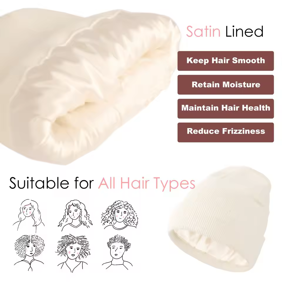 The smooth satin lining reduces static, minimizes frizz, and helps retain moisture — keeping curls, braids, and straight styles looking flawless no matter the weather.